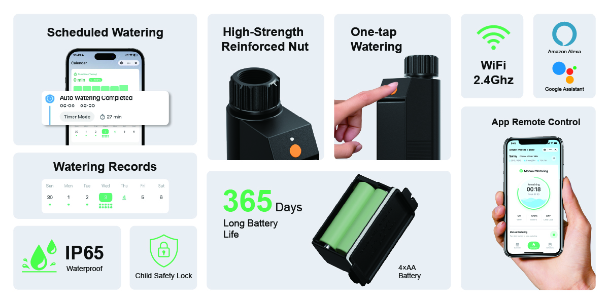R2601 WiFi Water Timer No Hub Needed Connect directly via 2.4 GHz WiFi. Quick setup in under 5 minutes. Smart Weather Alerts Real-time alerts prevent overwatering; check watering history anytime. Strong & Stable Signal Enhanced WiFi range up to 30 m / 100 ft for reliable outdoor control. Low Power, Long Life Energy-efficient design lasts 1 year + on standard batteries. Voice Control Works with Alexa & Google Home for hands-free watering. Send Inquiry Live Chat Product Details Inquiry *Subject: *Your Name: User type:PersonalBusinessDistributor *E-mail: *Phone: WhatsApp: Skype: Company: Country:Please select your country...AfghanistanAland IslandsAlbaniaAlgeriaAmerican SamoaAndorraAngolaAnguillaAntarcticaAntigua and BarbudaArgentinaArmeniaArubaAustraliaAustriaAzerbaijanBahamasBahrainBangladeshBarbadosBelarusBelgiumBelizeBeninBermudaBhutanBoliviaBosnia and HerzegovinaBotswanaBouvet IslandBrazilBritish Indian Ocean TerritoryBritish Virgin IslandsBruneiBulgariaBurkina FasoBurundiCambodiaCameroonCanadaCape VerdeCayman IslandsCentral African RepublicChadChileChinaChina HongKongChina taiwanChristmas IslandCocos (Keeling) IslandsColombiaComorosCongoCook IslandsCosta RicaCroatiaCubaCyprusCzech RepublicDemocratic Republic of CongoDenmarkDisputed TerritoryDjiboutiDominicaDominican RepublicEast TimorEcuadorEgyptEl SalvadorEquatorial GuineaEritreaEstoniaEthiopiaFalkland IslandsFaroe IslandsFederated States of MicronesiaFijiFinlandFranceFrench GuyanaFrench PolynesiaFrench Southern TerritoriesGabonGambiaGeorgiaGermanyGhanaGibraltarGreeceGreenlandGrenadaGuadeloupeGuamGuatemalaGuineaGuinea-BissauGuyanaHaitiHeard Island and Mcdonald IslandsHondurasHungaryIcelandIndiaIndonesiaIranIraqIraq-Saudi Arabia Neutral ZoneIrelandIsraelItalyIvory CoastJamaicaJapanJordanKazakhstanKenyaKiribatiKuwaitKyrgyzstanLaosLatviaLebanonLesothoLiberiaLibyaLiechtensteinLithuaniaLuxembourgMacauMacedoniaMadagascarMalawiMalaysiaMaldivesMaliMaltaMarshall IslandsMartiniqueMauritaniaMauritiusMayotteMexicoMoldovaMonacoMongoliaMontserratMoroccoMozambiqueMyanmarNamibiaNauruNepalNetherlandsNetherlands AntillesNew CaledoniaNew ZealandNicaraguaNigerNigeriaNiueNorfolk IslandNorth KoreaNorthern Mariana IslandsNorwayOmanPakistanPalauPalestinian Occupied TerritoriesPanamaPapua New GuineaParaguayPeruPhilippinesPitcairn IslandsPolandPortugalPuerto RicoQatarReunionRomaniaRussiaRwandaSaint Helena and DependenciesSaint Kitts and NevisSaint LuciaSaint Pierre and MiquelonSaint Vincent and the GrenadinesSamoaSan MarinoSao Tome and PrincipeSaudi ArabiaSenegalSerbia and MontenegroSeychellesSierra LeoneSingaporeSlovakiaSloveniaSolomon IslandsSomaliaSouth AfricaSouth Georgia and South Sandwich IslandsSouth KoreaSpainSpratly IslandsSri LankaSudanSurinameSvalbard and Jan MayenSwazilandSwedenSwitzerlandSyriaTajikistanTanzaniaThailandTogoTokelauTongaTrinidad and TobagoTunisiaTurkeyTurkmenistanTurks And Caicos IslandsTuvaluUgandaUkraineUnited Arab EmiratesUnited KingdomUnited Nations Neutral ZoneUnited StatesUnited States Minor Outlying IslandsUruguayUS Virgin IslandsUzbekistanVanuatuVatican CityVenezuelaVietnamWallis and FutunaWestern SaharaYemenZambiaZimbabwe *Content: Submit Δ Share: FacebookTwitterLinkedInWhatsApp Related Products Hot Products Smart Keylesswith Keypad Cylinder – R3504 Send Inquiry R8801 Camera Homebase Send Inquiry R7246 AC Control with built-in Temperature & Humidity Send Inquiry R3569 Wi-Fi Pan and Tilt Outdoor Camera Send Inquiry
